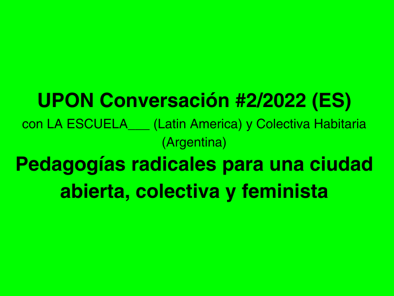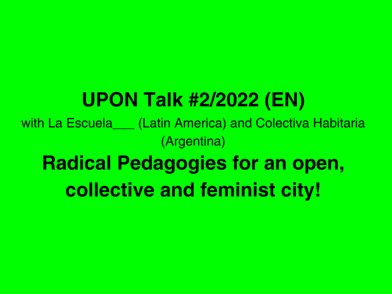 UPON is a series of talks that reflects on urban practices from an inclusive, multilingual, context bound and feminist perspective. As a platform for reciprocal exchange and collective research about urban practices in an international context, UPON connects artists, urbanists and activists around the world.