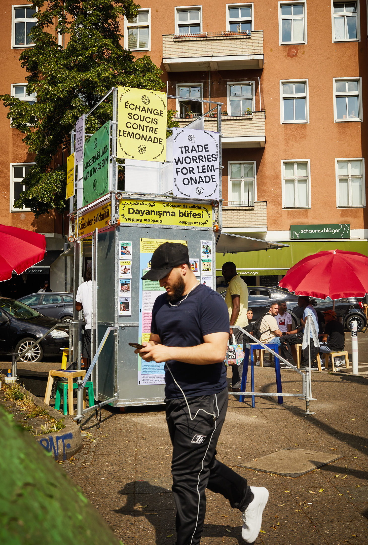 Der Kiosk der Solidarität wurde 2023 und 2024 finanziert durch den Berliner Projektfonds Urbane Praxis und 2023 ko-finanziert durch das Forschungsprojekt Transforming Solidarities (Berlin University Alliance).