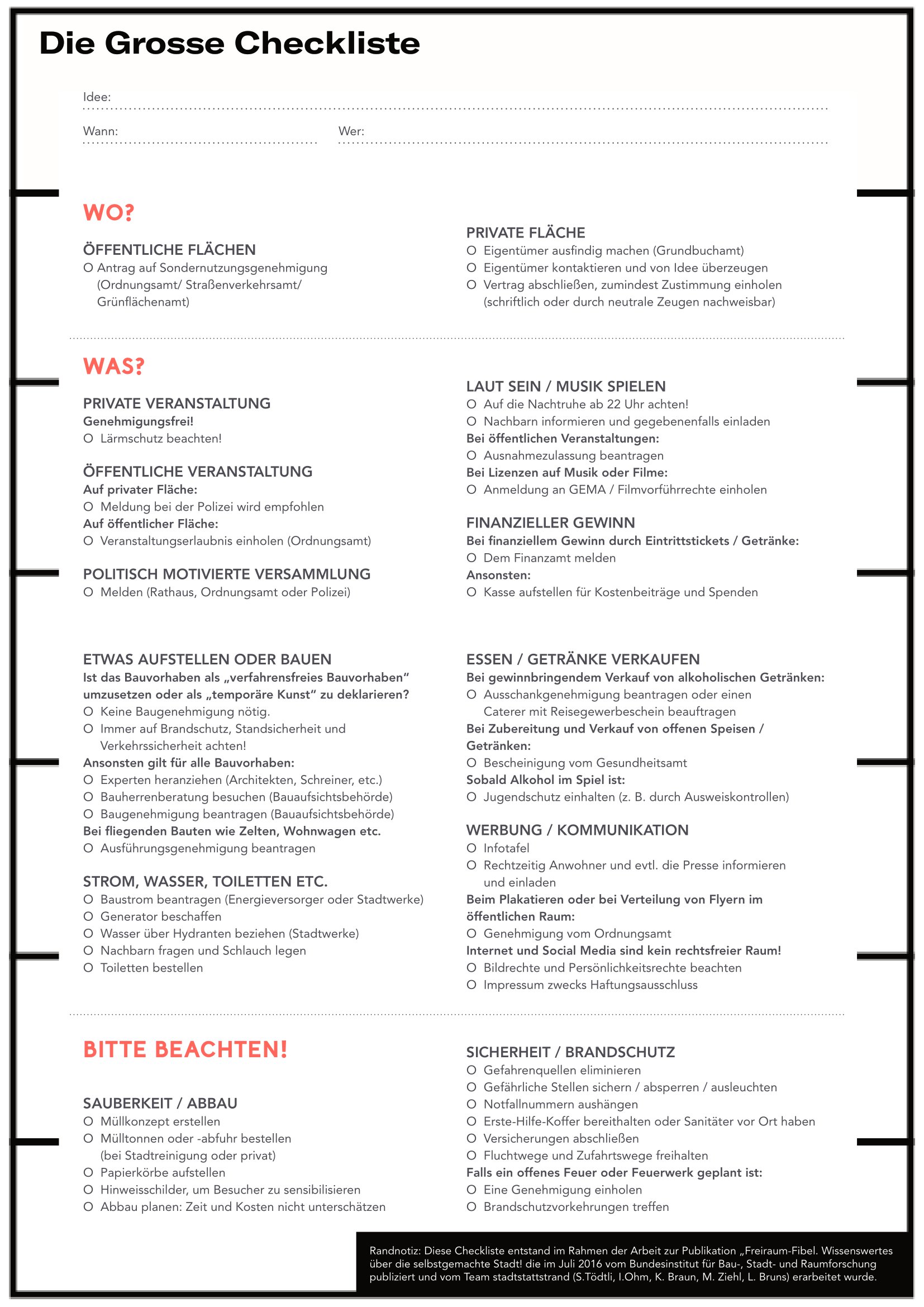 Diese Checkliste entstand im Rahmen der Arbeit zur Publikation „Freiraum-Fibel.