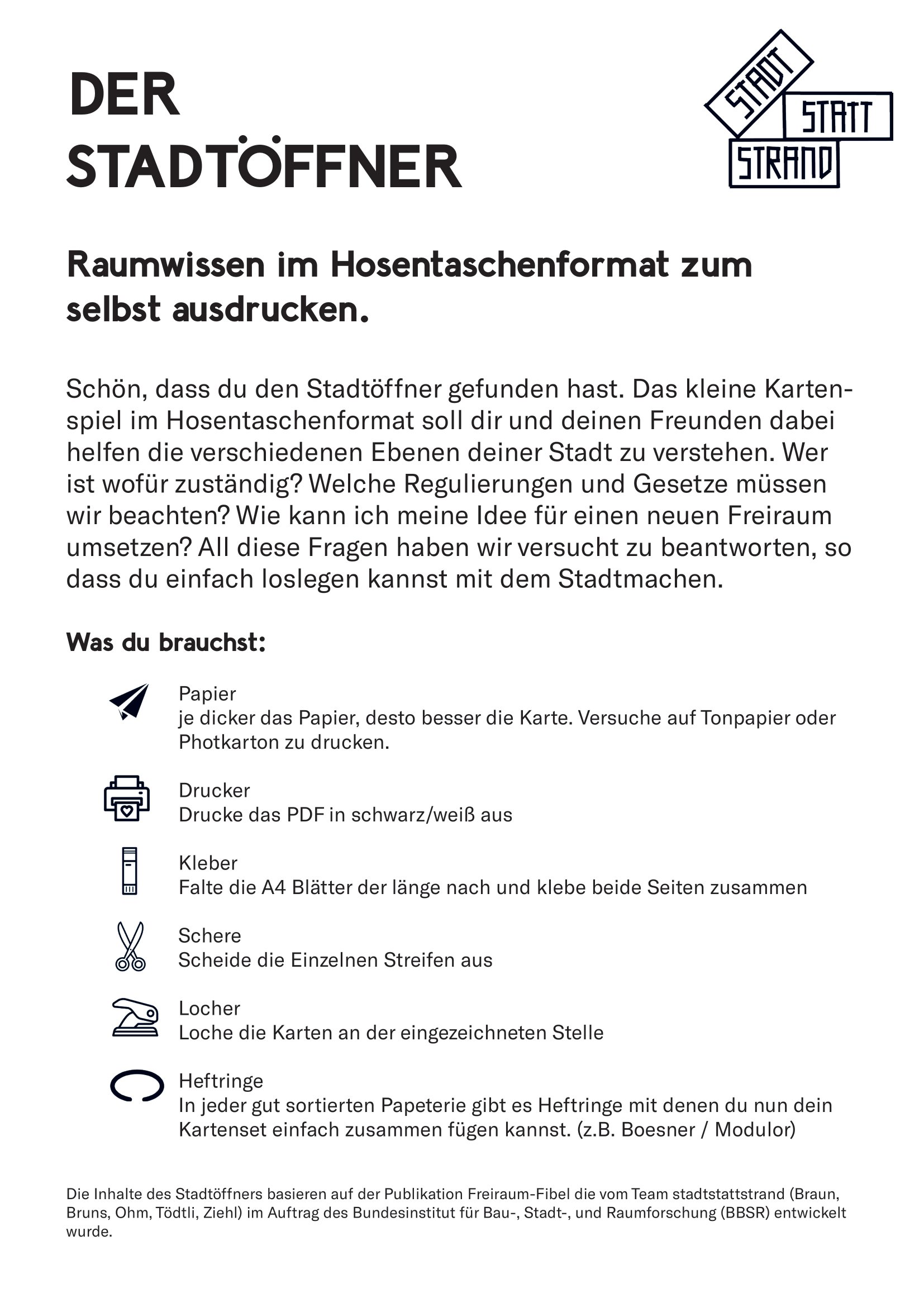 Das kleine Kartenspiel im Hosentaschenformat soll Euch dabei helfen die verschiedenen Ebenen der Stadt zu verstehen.